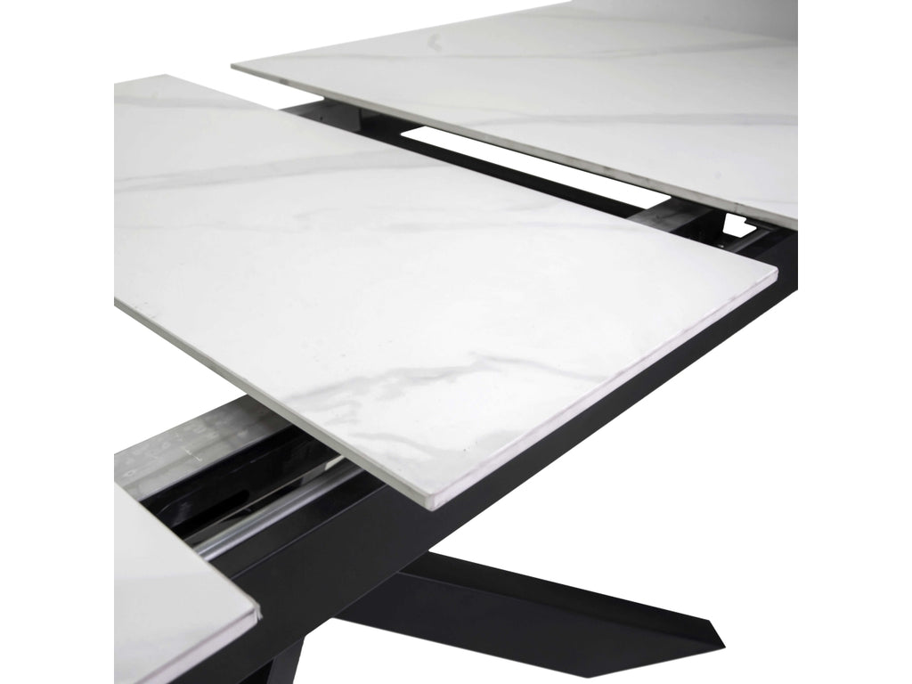 Tavolo metallo Pepper allungabile top bianco pietra sinterizzata 160/200x90xh.76cm