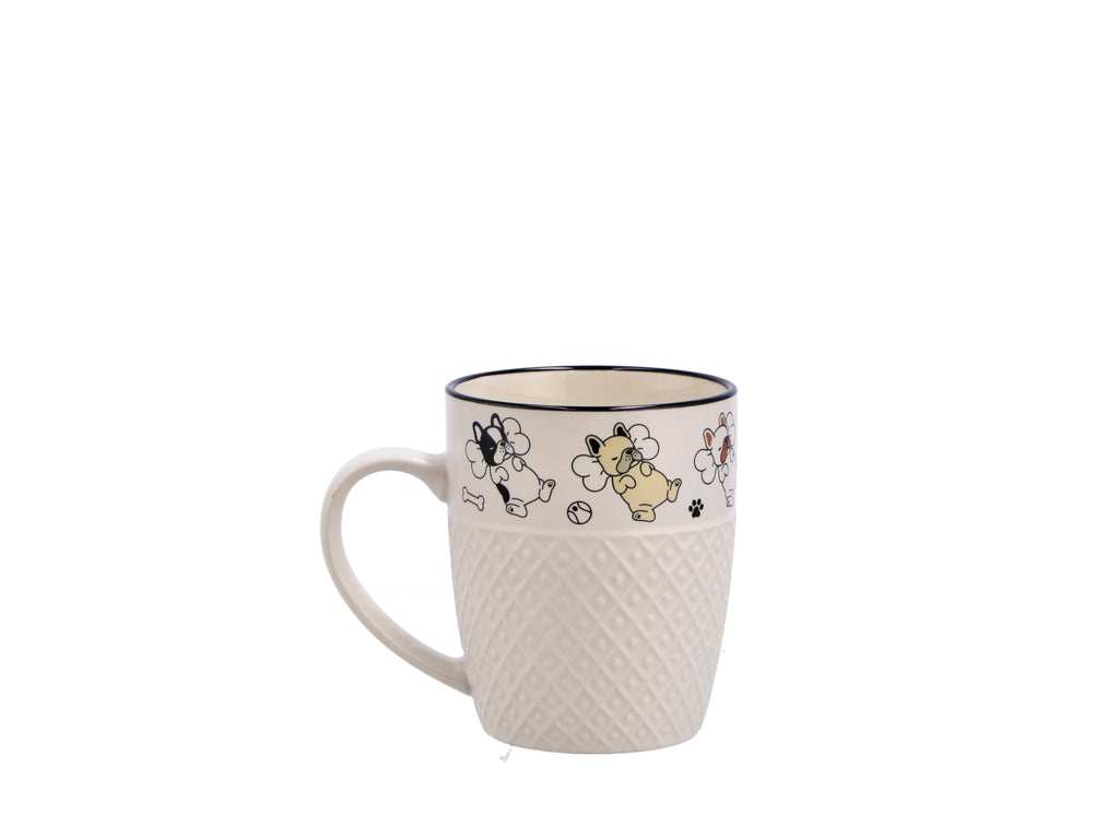 Tazza mug 380ml con bordino decorato d.9xh11cm, 4 assortimenti