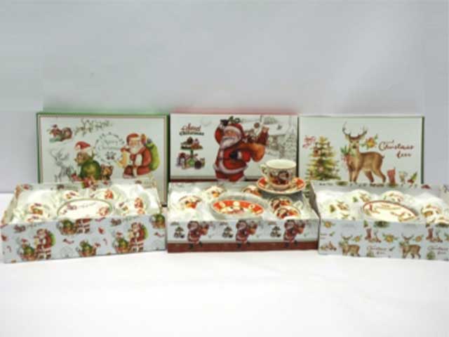 Tazzina con piattino 6 pezzi in scatola rgalo, 2 decori assortiti