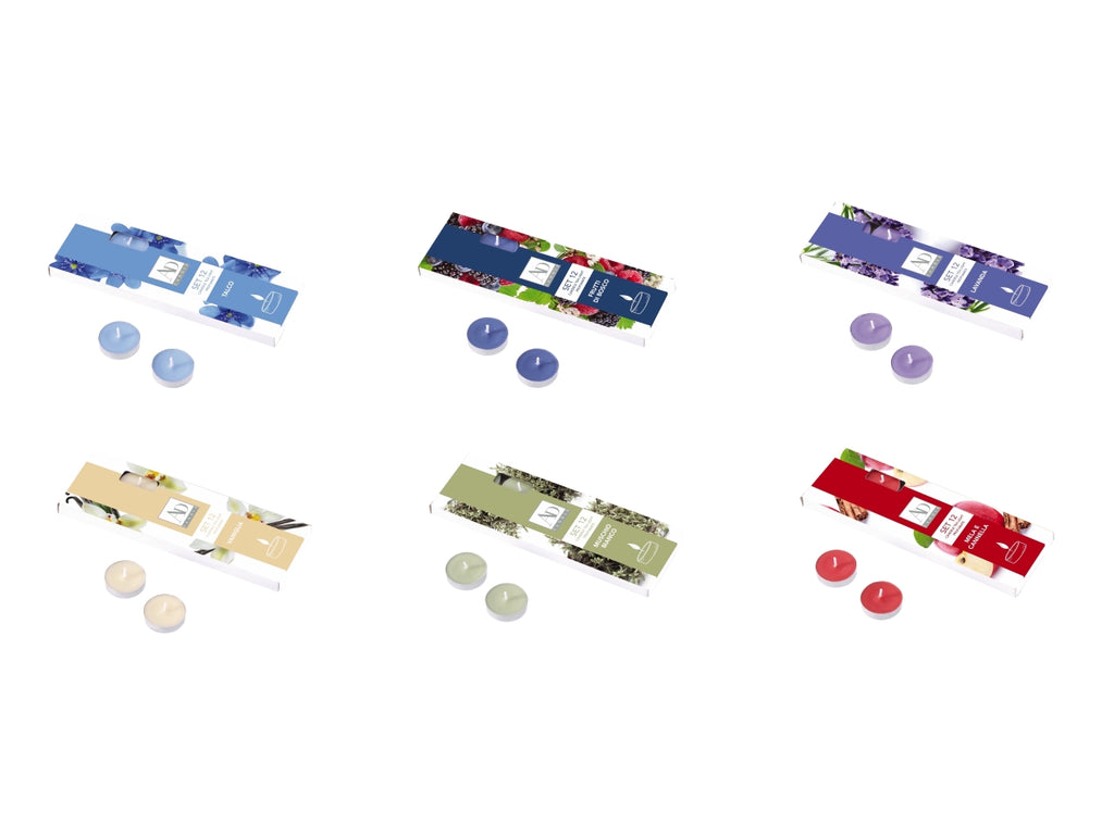 Tea light d.3,75cm la confezone comprende 12 tea light in 6 colori assortiti