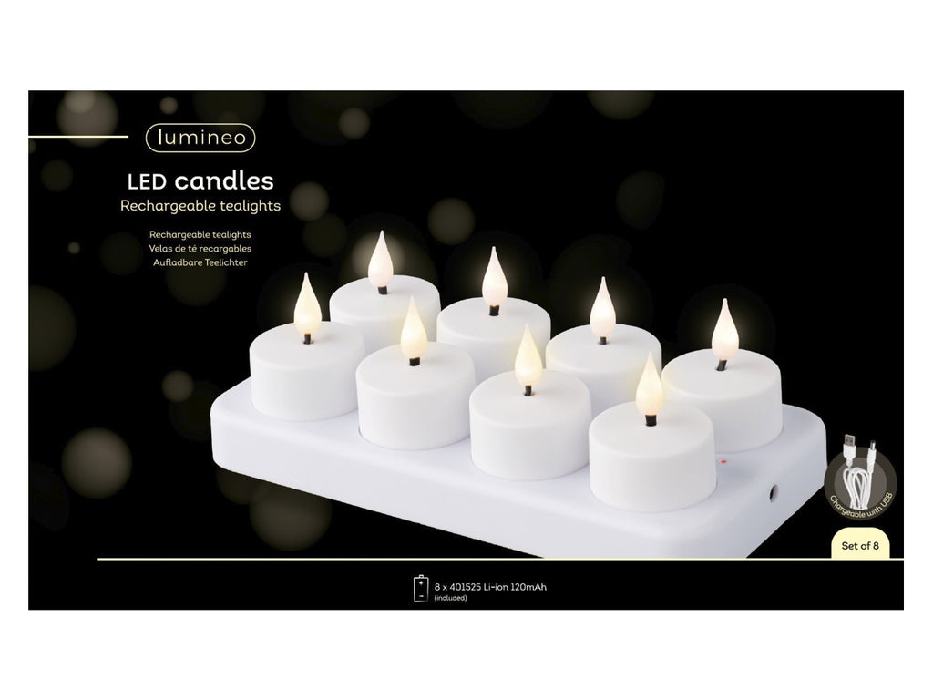 Tealight led 4x4,5cm 8 pezzi con base ricaricabile