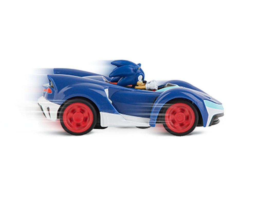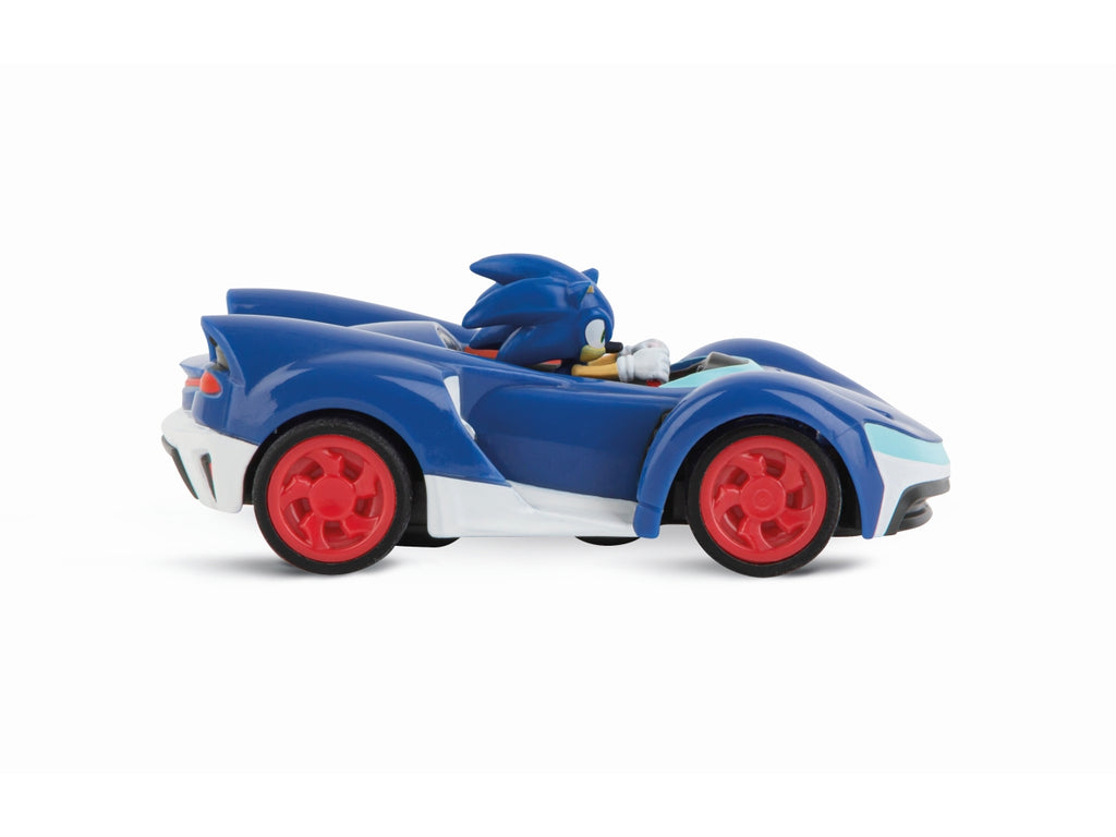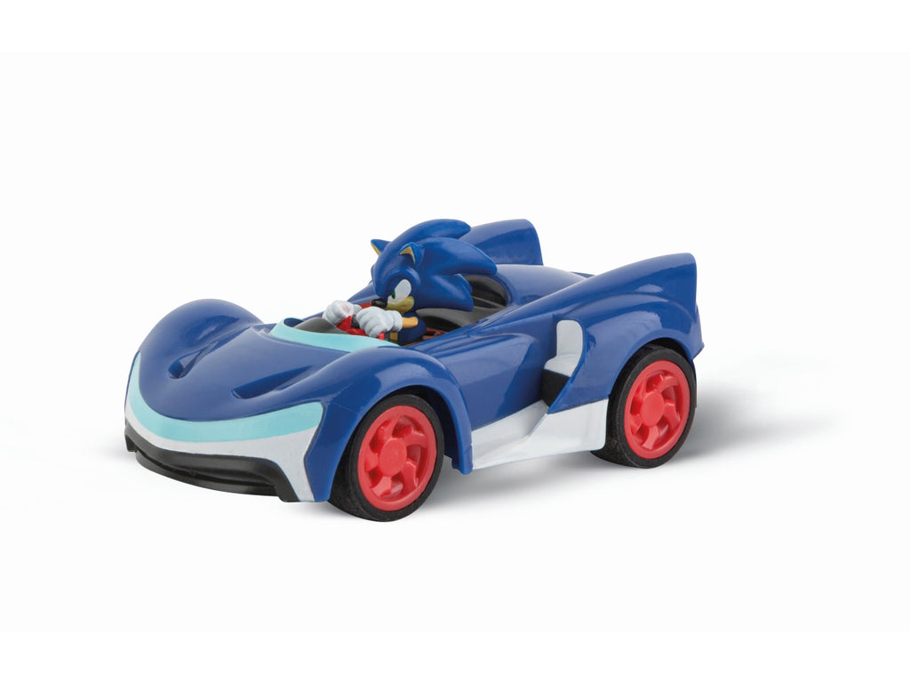 Anche il più piccolo Sonic è inarrestabile Veloce, più veloce, Sonic! Il riccio blu cult in piccolo formato accelera per Carrera RC. Il pilota Team Sonic Racing™ Mini RC in scala 1:43 è lungo circa 7,5 cm ed è una rappresentazione fedele della sua controparte digitale grazie alla licenza di riproduzione SEGA. Il popolare riccio e il suo kart da corsa entusiasmano gli spettatori a velocità massime intorno ai 5 km/h. La batteria ricaricabile integrata, un cavo di ricarica e un controller sono inclusi nella fornitura, così Sonic è subito pronto per la gara.