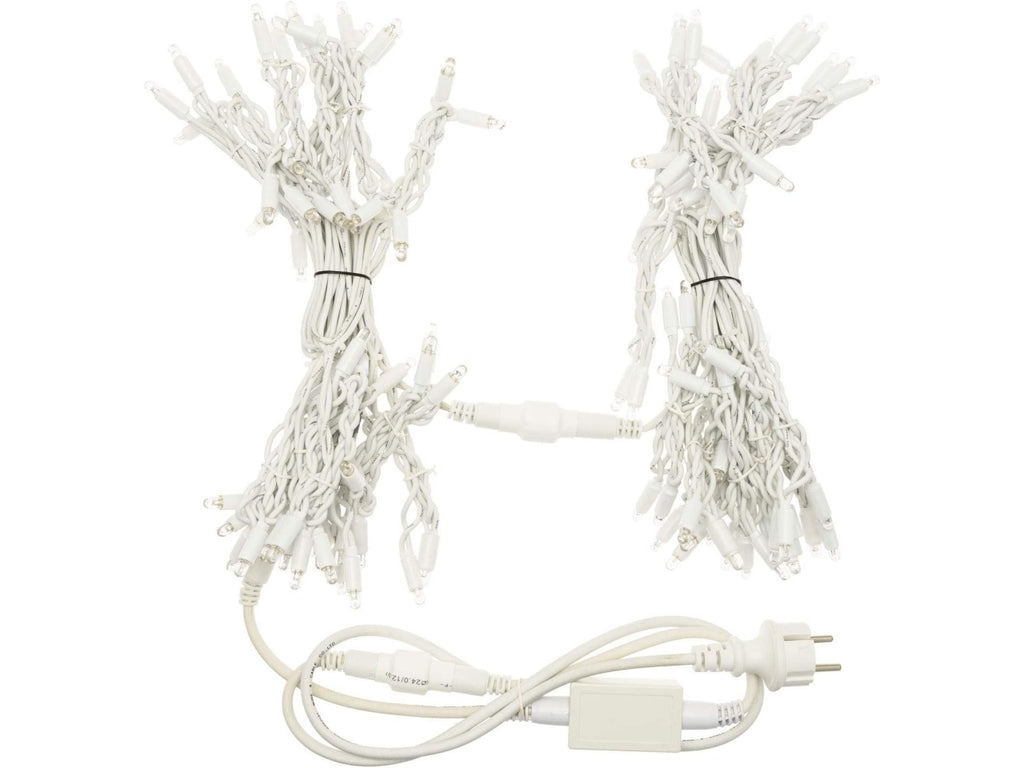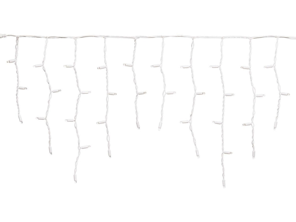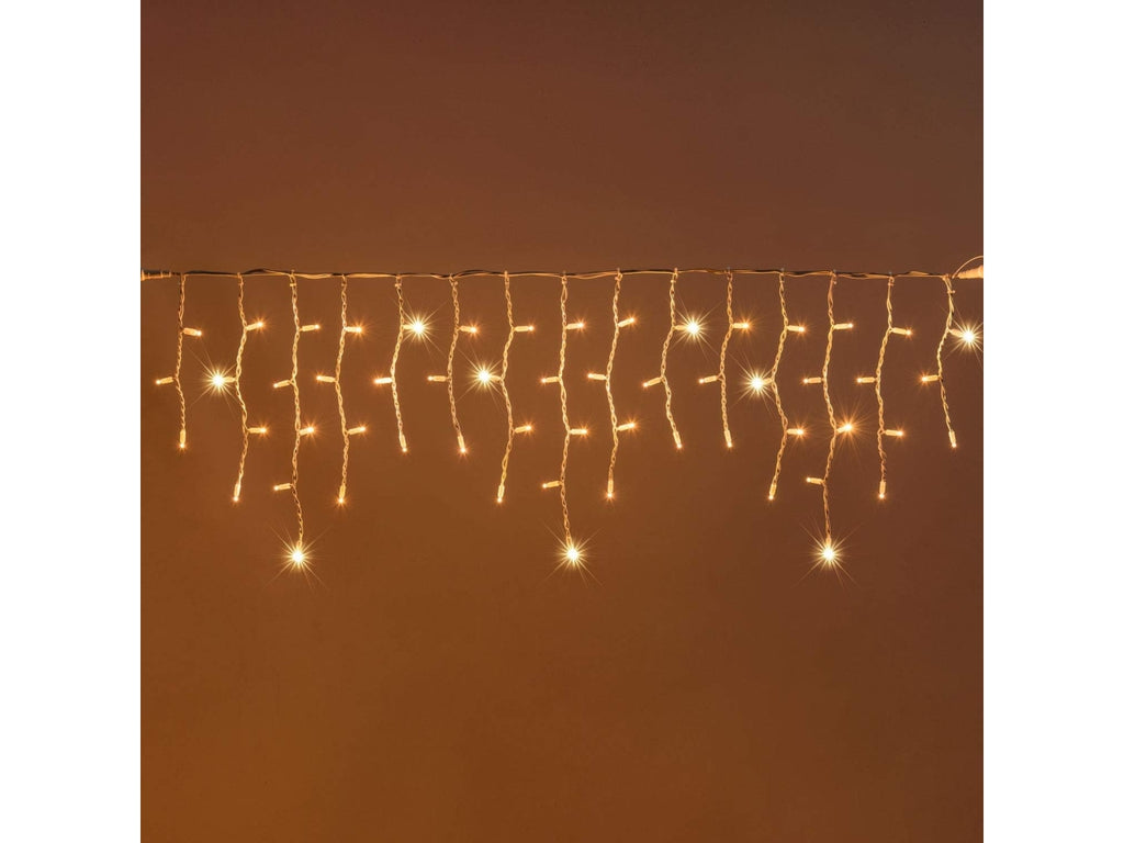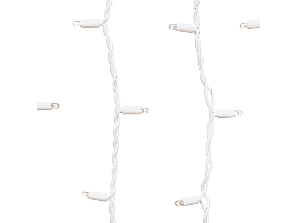 Tenda luminosa professionale a LED con effetto flash non disattivabile, adatta per uso interno ed esterno. Realizzata con cavo in gomma bianca di alta qualità, offre una lunghezza di 3 metri e un’altezza di 0,5 metri, con un totale di 114 LED Maxiled da Ø 7 mm a luce bianco caldo. È prolungabile fino a 60 metri, consentendo un’ampia copertura decorativa. Il prodotto è dotato di cavo di alimentazione incluso della lunghezza di 1,5 metri. L’interspazio tra le calate è di 10 cm. Il grado di protezione IP44 garantisce resistenza agli agenti atmosferici, rendendola ideale per installazioni sia in ambienti interni sia all’aperto.