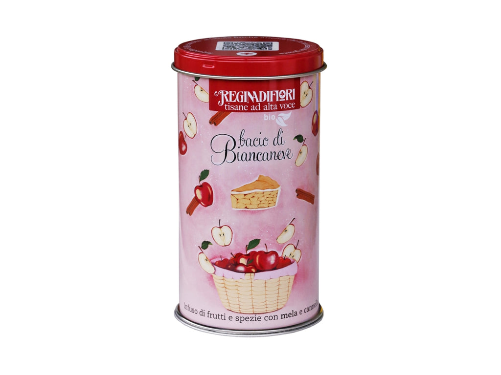 ReginadiFiori ha creato una nuova linea di tisane, una coccola per il palato, la mente e il cuore. Potrai assaporare le favole più belle, raccontate con un nuovo sguardo che ne reinventa la trama e il finale, e in cui il tempo di ascolto coincide con iltempo di infusione. Bacio di Biancaneve: Le radici del vero amore. Infuso di frutti e spezie alla MELA e CANNELLA Un infuso dolce e speziato che profuma di fiori e bacche di bosco, di mela e di cannella, per stregare il cuore e inebriare ogni tuo piccolo momento di piacere.