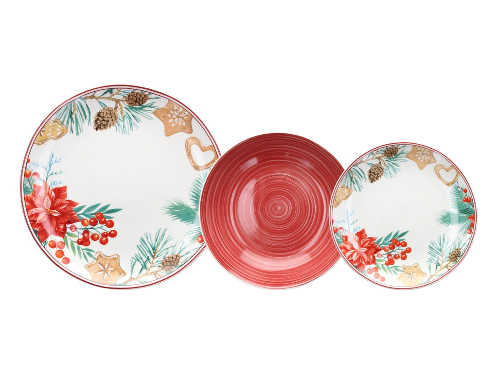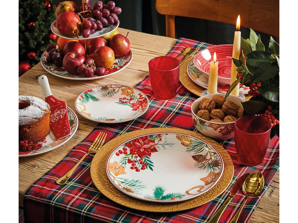 Servizio tavola 18 pz, adatto per microonde e resistente in lavastoviglie La magia del Natale prende forma in questa collezione. Servizio adatto per le festività natalizie