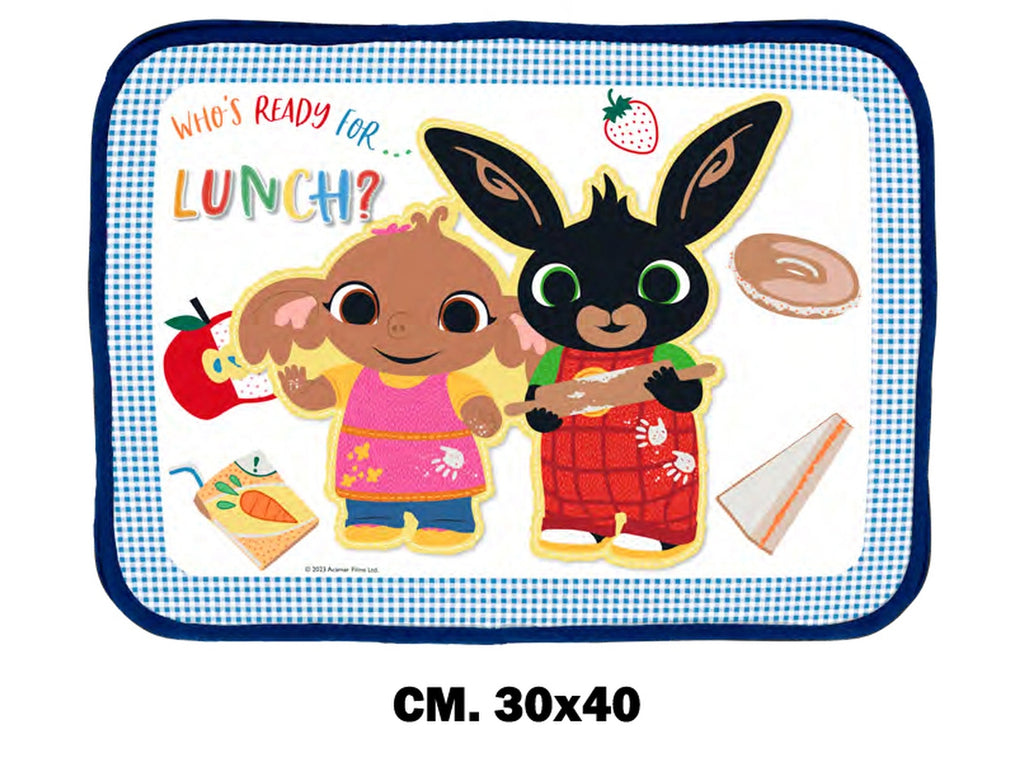 La tovaglietta impermeabile di Bing è l'accessorio perfetto per rendere i pasti dei bambini più divertenti e colorati. Realizzata in poliestere di alta qualità , è resistente e facile da pulire, ideale per l'uso quotidiano. Le sue dimensioni di 30x40 cm e il peso leggero di 27 grammi la rendono pratica da usare e da riporre. Con la stampa vivace e i personaggi amati della serie Bing, questa tovaglietta aggiunge un tocco di allegria alla tavola, proteggendo al contempo la superficie sottostante grazie al materiale impermeabile.