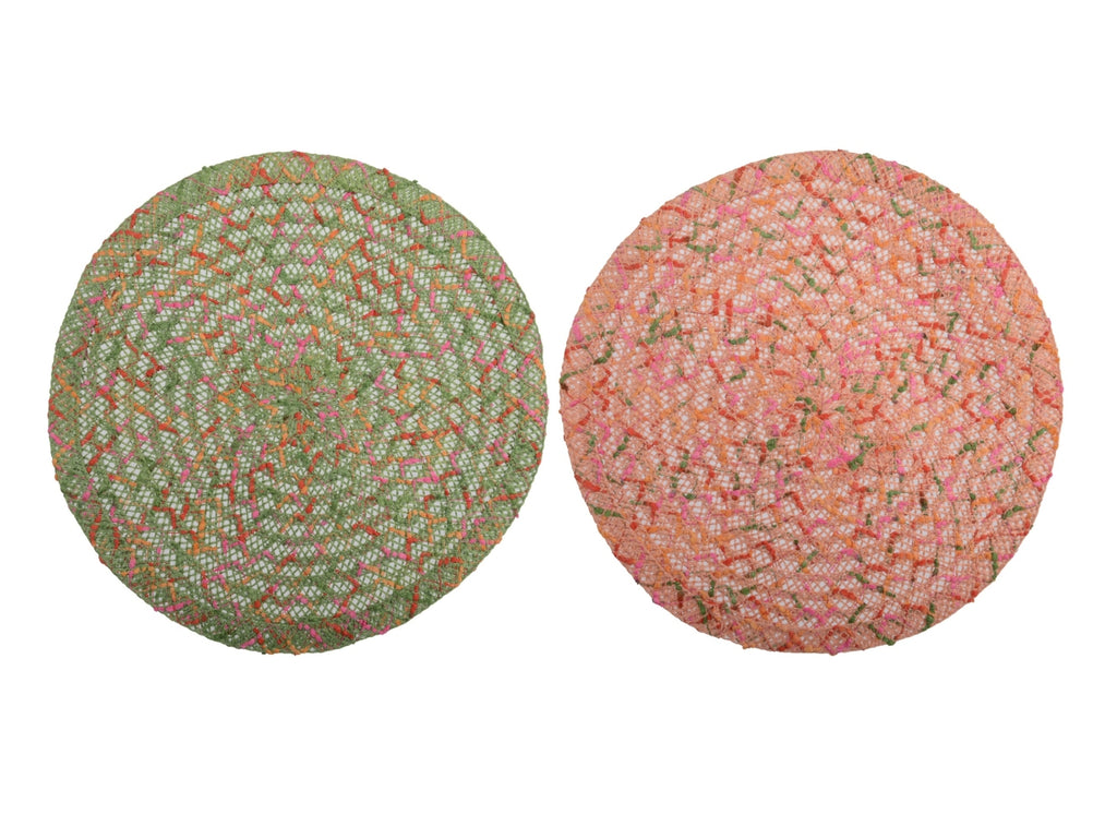 Aggiungi vivaci accenti di colore alla tua tavola da pranzo con questo set di due tovagliette rotonde di . Il motivo giocoso in diverse tonalità crea un look allegro che rende ogni pasto speciale. Realizzate in carta robusta con un diametro di 38 cm, queste tovagliette si adattano perfettamente a una varietà di stili d'arredo. Ideali per dare al tuo cibo un tocco di atmosfera e per proteggere il tavolo in modo pratico.