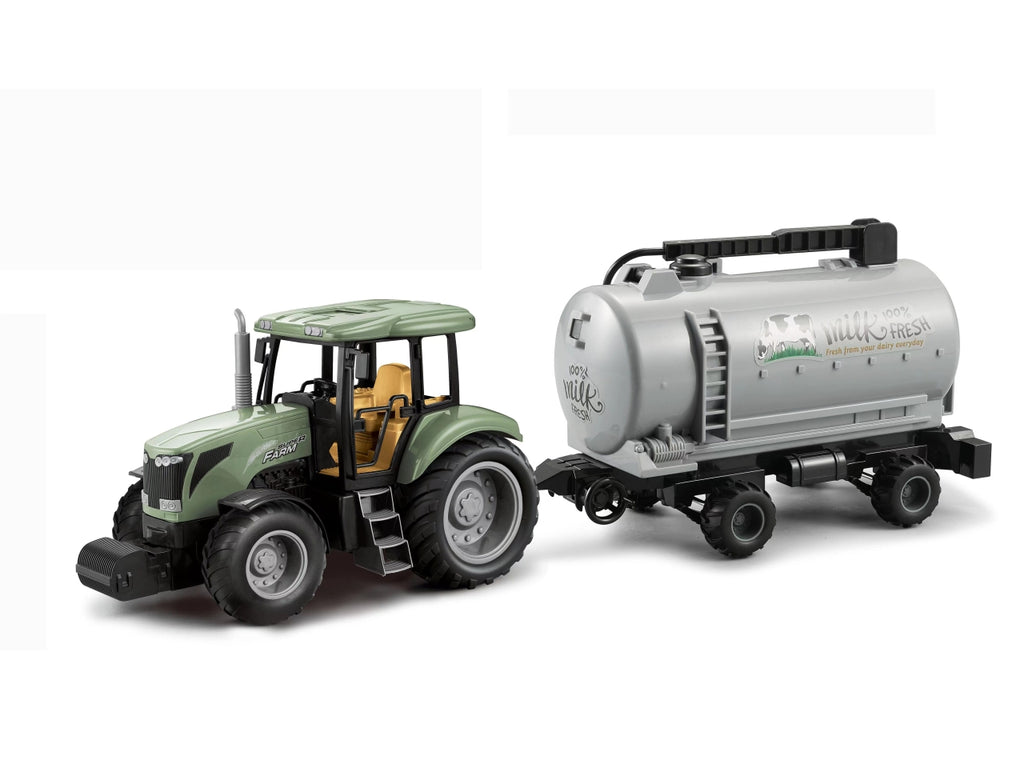Trattore c/cisterna: trattore rc 27mhz, sc. 1:24 con luci e un accessorio inclusi. batteria al litio ricaricabile + cavo usb per la ricarica inclusi.
