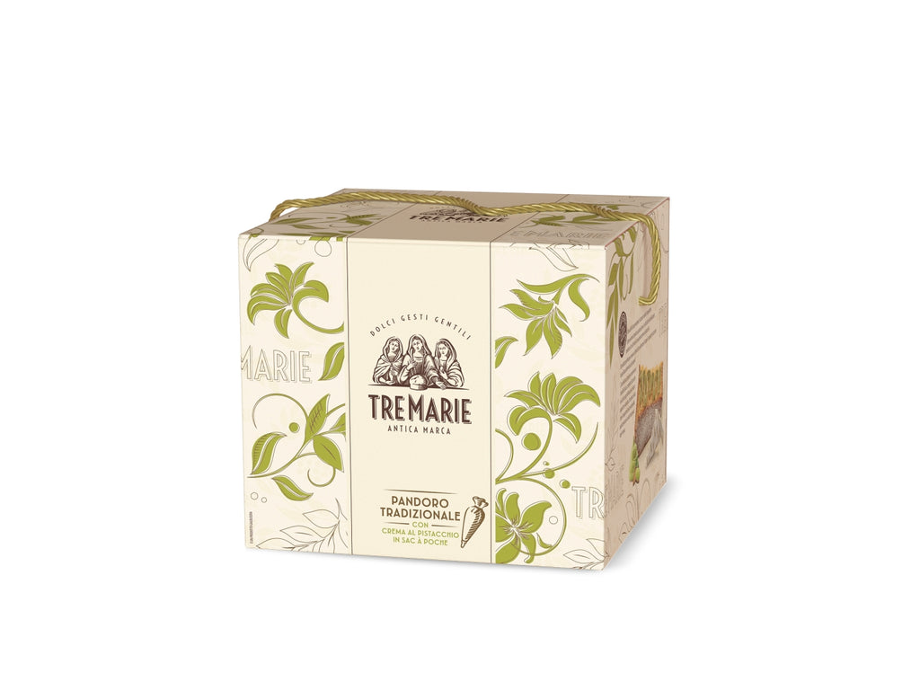 Una versione di pandoro gustosissima: la sofficità unica della pasta pandoro si arricchisce di una golosa crema al pistacchio. Il prodotto perfetto per creare un blend di consistenze e di sapori in grado di stuzzicare le papille gustative dei più esigenti. Lâuso della sac à poche consente una ritualità unica, un gesto di cura che arricchisce ogni fetta con un tocco saporito e ricercato. Un gusto unico, che vi trasporterà nel mondo della pasticceria con un solo tocco e ad ogni morso.