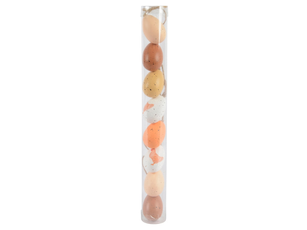 Un'atmosfera primaverile e soleggiata riempie la stanza non appena queste graziose uova di Pasqua pendono delicatamente dai rami o si appoggiano sul davanzale. Questo set di uova decorative di Decoris si distingue per i suoi colori tenui e naturali e le sue giocose e delicate macchie. Il polistirolo conferisce loro un design leggero ed elegante, alto circa 5 cm e largo 3,5 cm, rendendole facili da abbinare ad altre decorazioni primaverili. Con il nastro di raso bianco, appenderle è semplice ed elegante, adattandosi a una vasta gamma di stili d'interni, dal moderno al rustico.
