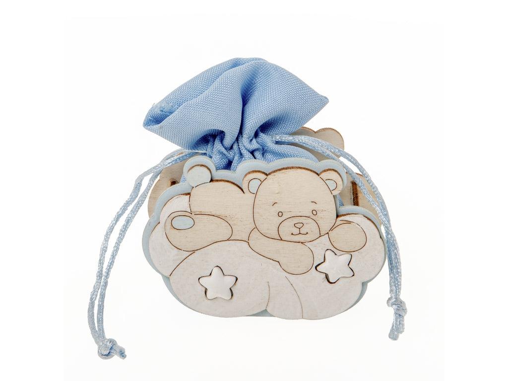 Sacchetto orsetto con stelle in legno e poliestere misura 9cm colore cielo