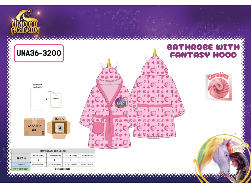 Unicorn Academy accappatoio in coralina con cappuccio fantasy