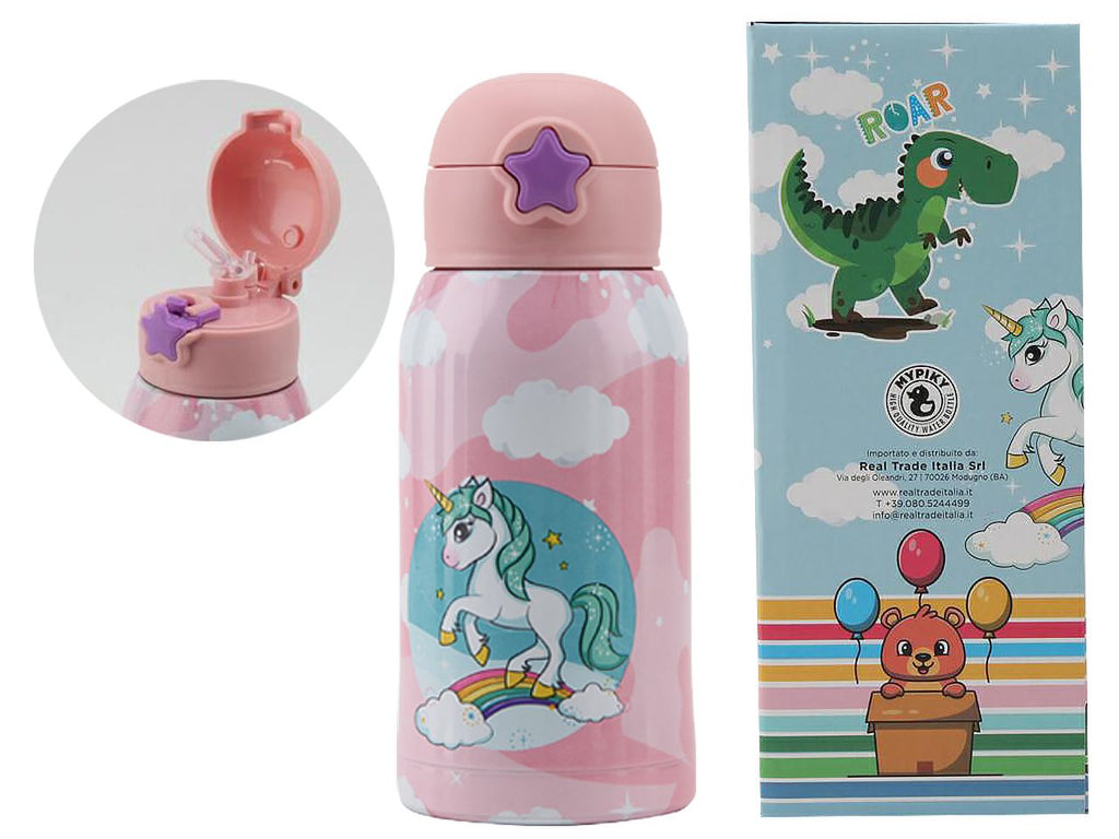 La borraccia termica è stata sviluppata specificatamente per l'utilizzo dei bambini. alla cura dei migliori materiali utilizzati in fase produttiva, si aggiunge la semplicità  del sistema brevettato di apertura e chiusura, che evita il contatto diretto delle mani del bimbo con la cannuccia. tutto all' insegna di una maggiore igiene nell'utilizzo. e' ideale per mantenere le bevande alla temperatura ottimale, 24h freddo e 12h caldo.