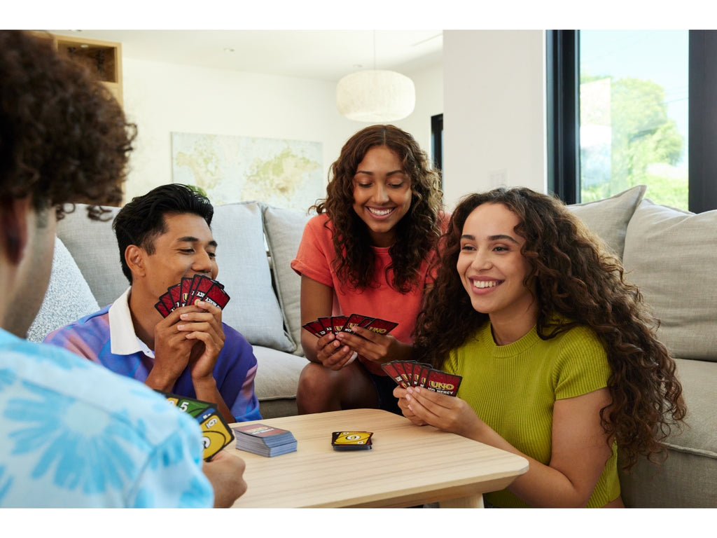 UNO Show 'em No Mercy è la versione del gioco di UNO più brutale di sempre! Include tantissime nuove carte con penalità MOLTO più dure (chi pesca 10 carte?) e nuove regole che obbligano i giocatori ad accumulare, scambiare e pescare più carte che mai! E c'è anche la regola 'Senza pietà ' (roba forte) se la situazione dovesse complicarsi. Questa versione spietata del gioco classico offre due modi per vincere: scartando tutte le carte OPPURE eliminando tutti gli altri giocatori dal gioco! E quando vi resta solo una carta in mano, non dimenticate di gridare 'UNO'!