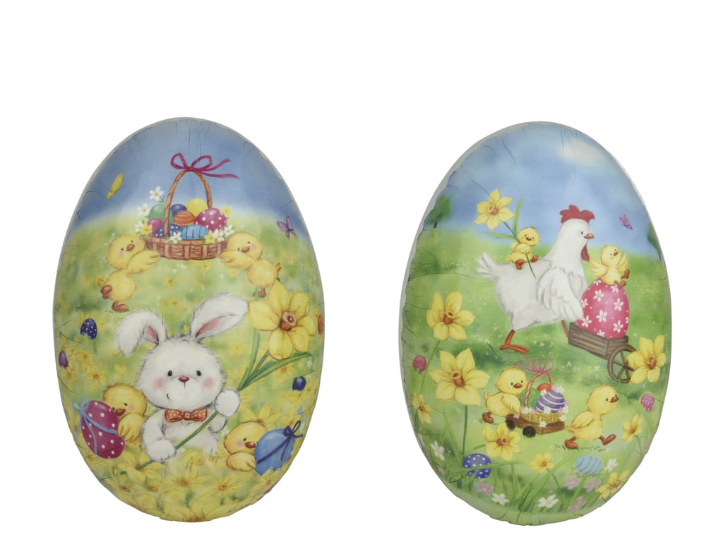 Porta una rilassata atmosfera primaverile in casa tua con questo uovo di Pasqua Decoris, dove un dolce prato prende vita con un simpatico coniglietto, vivaci pulcini e allegri fiori primaverili. Questo uovo di Pasqua è realizzato in carta leggera e ha una forma ovale che misura 15 cm di lunghezza e 10 cm di larghezza. Le illustrazioni colorate e giocose gli conferiscono un aspetto fresco e invitante, perfetto per un tema stagionale allegro e suggestivo. Posiziona questo uovo di Pasqua di grandi dimensioni sul davanzale della finestra o abbinalo ad altre decorazioni per un grazioso colpo d'occhio.
