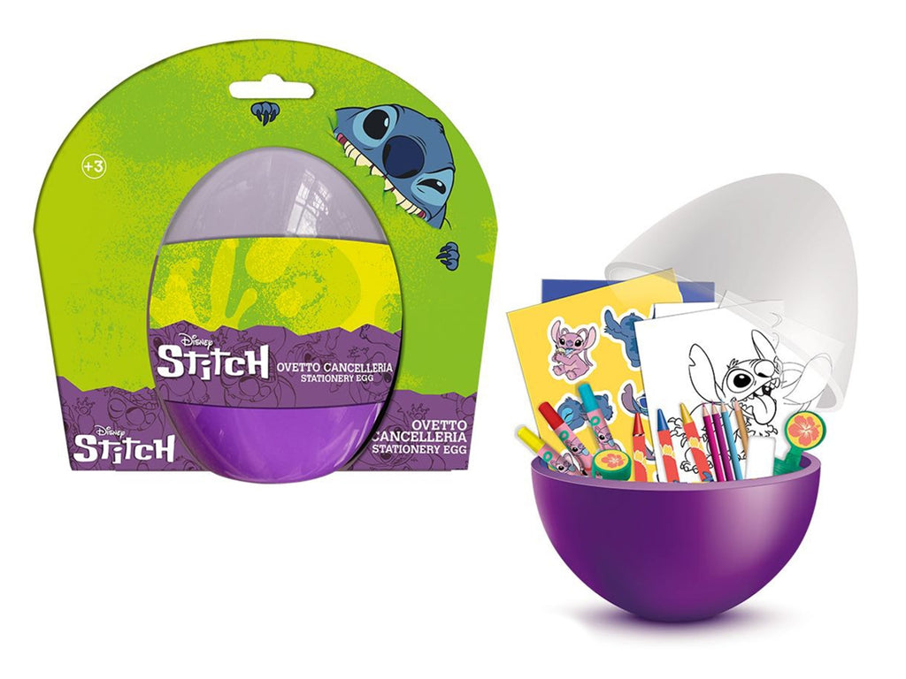 L'uovo comprende: 3 colori a cera, 3 colori a matita, 3 pennarelli, 1 timbrino, 1 gomma, 1 temperamatite, 1 matita HB, 2 fogli di adesivi e 10 fogli da colorare.