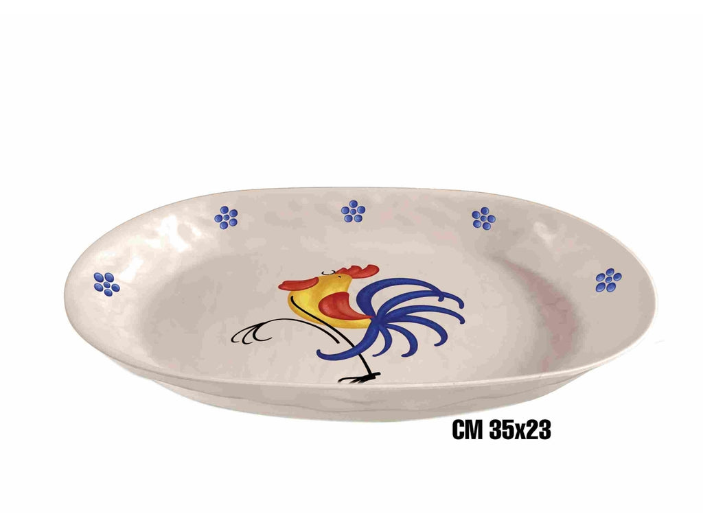 Vassoio ovale 35x23cm in melamina con decoro gallo