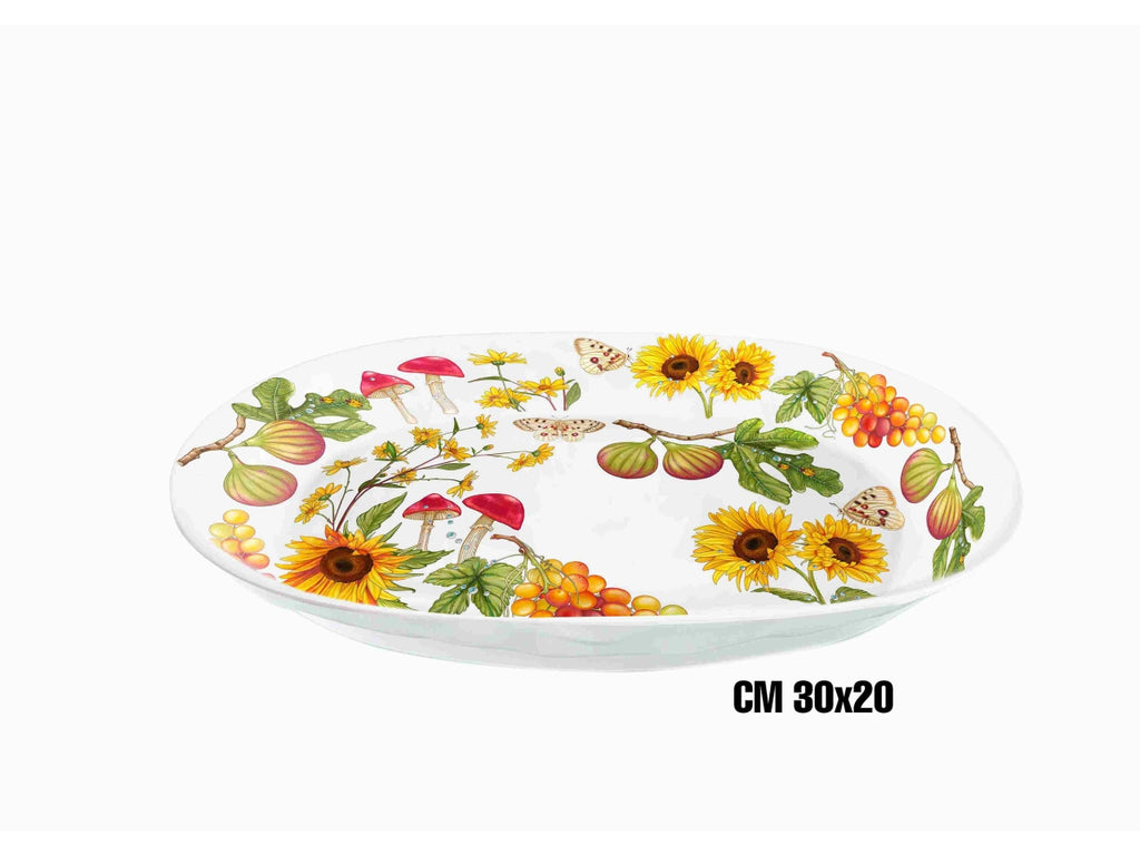 Vassoio ovale fondo in melamina 30x20cm decoro fiori e frutta