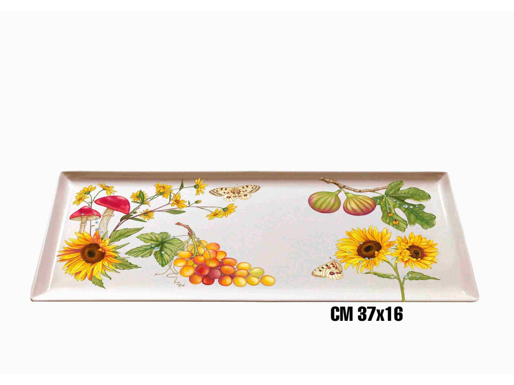 Vassoio rettangolare in melamina 37x16cm decoro fiori e frutta
