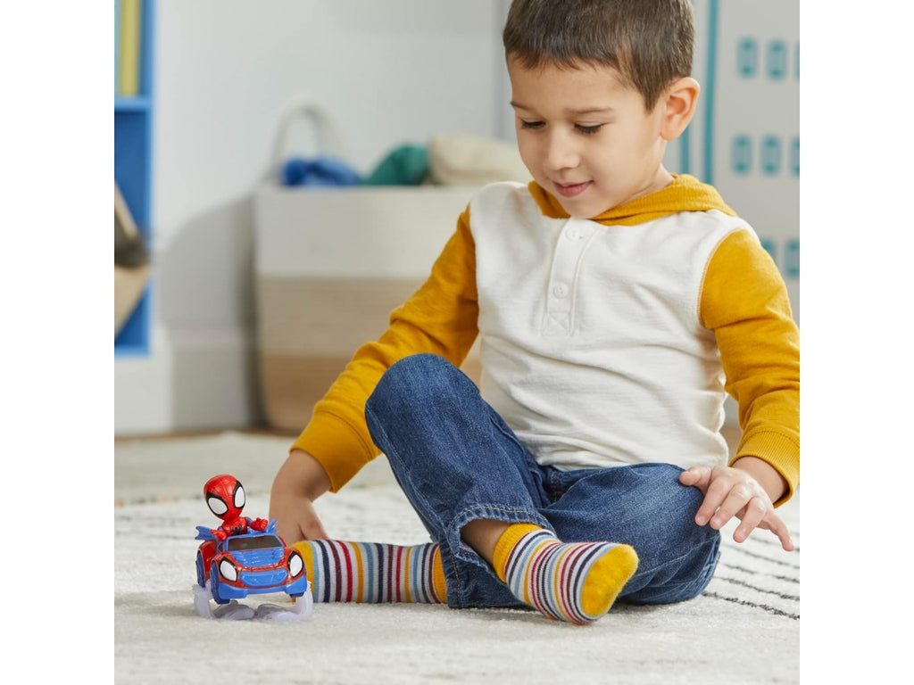 Marvel Spidey e i suoi fantastici amici figura, veicolo e set di accessori Entra in azione con questi set di veicoli, personaggi e accessori Marvel Spidey and His Amazing Friends. Questo set di giocattoli Marvel include un personaggio d'azione in scala da 10 cm. e un veicolo con un accessorio incluso, così i bambini in età prescolare dai 3 anni in su possono entrare in azione per aiutare il Team Spidey ad abbattere i cattivi! Ispirati allo spettacolo Marvel per bambini in età prescolare, i bambini adoreranno stare con i loro supereroi preferiti e ricreare avventure epiche. Questi entusiasmanti giocattoli Marvel Spidey and His Amazing Friends sono il regalo perfetto per i bambini piccoli che amano immaginare grandi avventure! Sfreccia verso l'azione con il set personaggio con veicolo deluxe ispirato alla serie Marvel "Spidey e I Suoi Fantastici Amici!" Questo set di giocattoli Marvel contiene un'action figure da 10 cm di Iron Man e una macchina Iron Racer con accessorio ali da jet incluso.