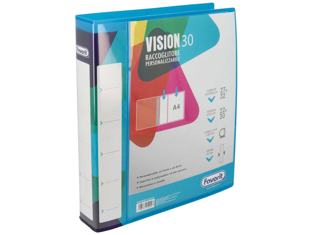 Vision raccoglitore personalizzabile 22x30cm 4 anelli diametro 30mm azzurro