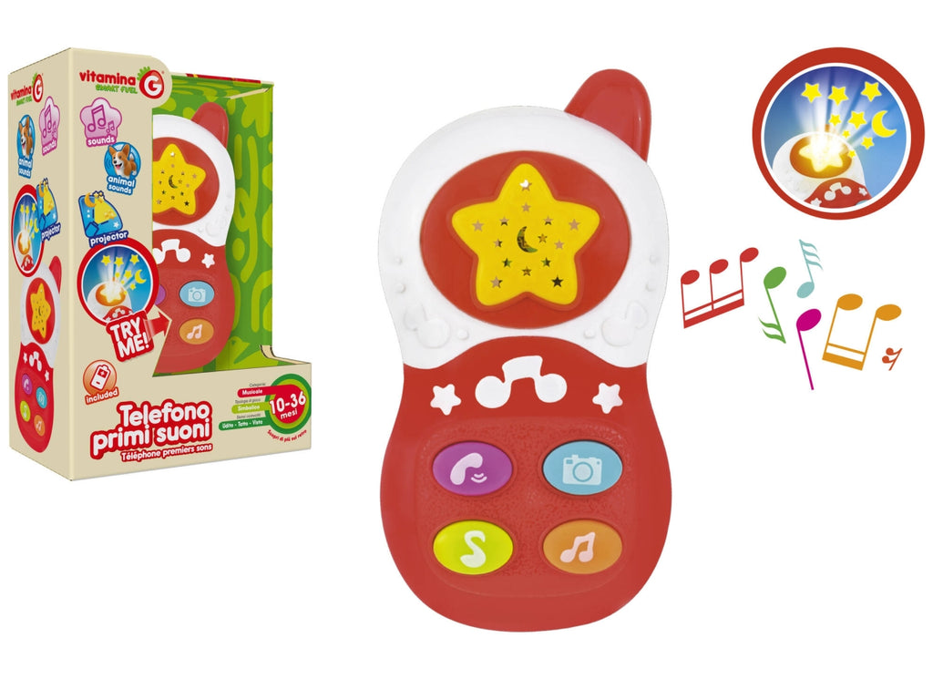 Telefono interattivo e coloratissimo dedicato alla prima infanzia, ricco di luci e suoni per stimolare la vista e l'udito dei bambini, e migliorare le capacità di coordinamento. Questo divertente telefono è realizzato con materiali di qualità per giocare in tutta sicurezza. Funziona a batterie AAA x 2, incluse nella confezione. Un piccolo telefono per un grande divertimento.