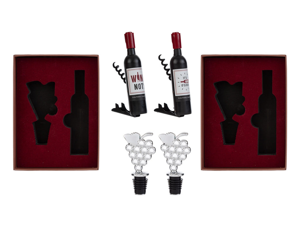 Wine time accessori vino in scatola con apribottiglia e tappo in 2 assortimenti