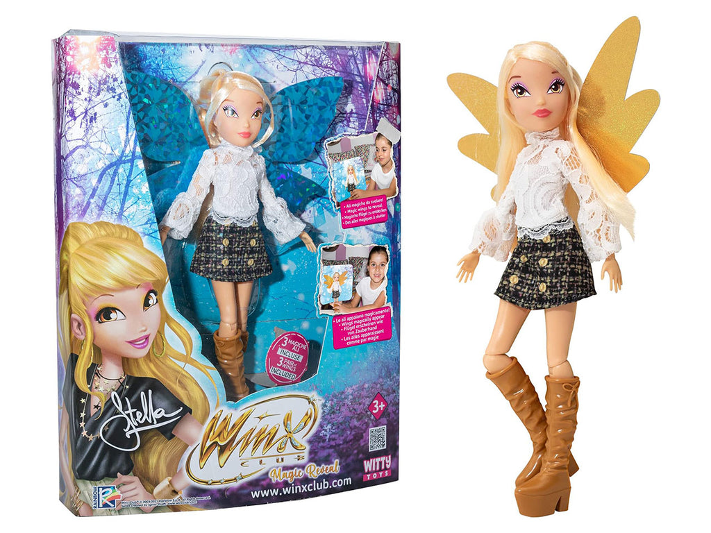 Dotata di ali che appaiono e spariscono magicamente dal fondo della collezione; la bambola si mostra con un paio di ali a vista ma ne ha altre due paia nascoste da scoprire. Il fondo della confezione è removibile e dotato di cavalletto, per riutilizzarlo diverse volte e non rinunciare al tocco di magia che caratterizza questa bambola. Lâattaccatura delle ali è compatibile con tutte le altre ali della linea Winx Club.