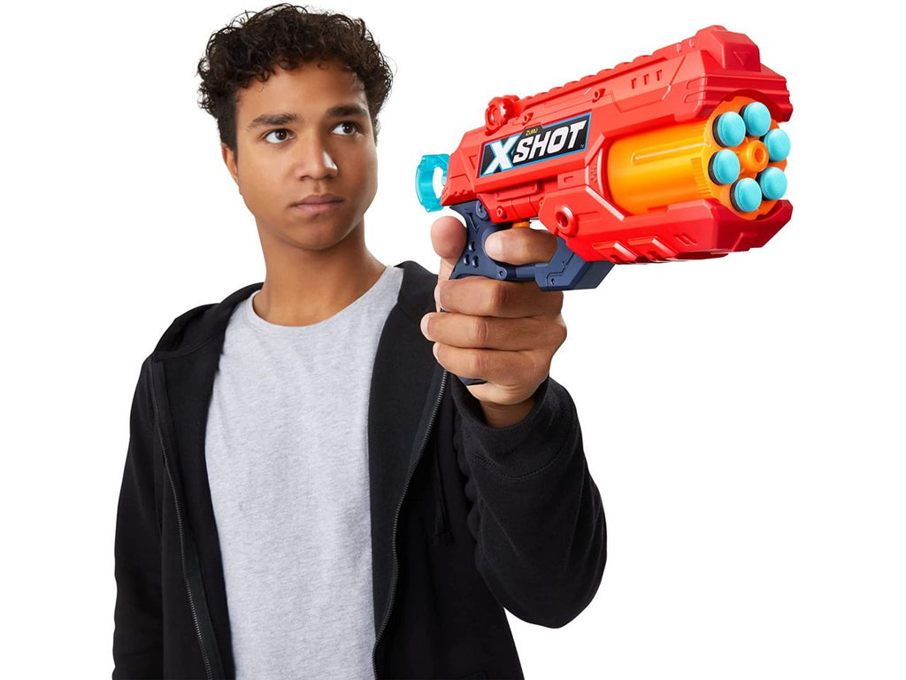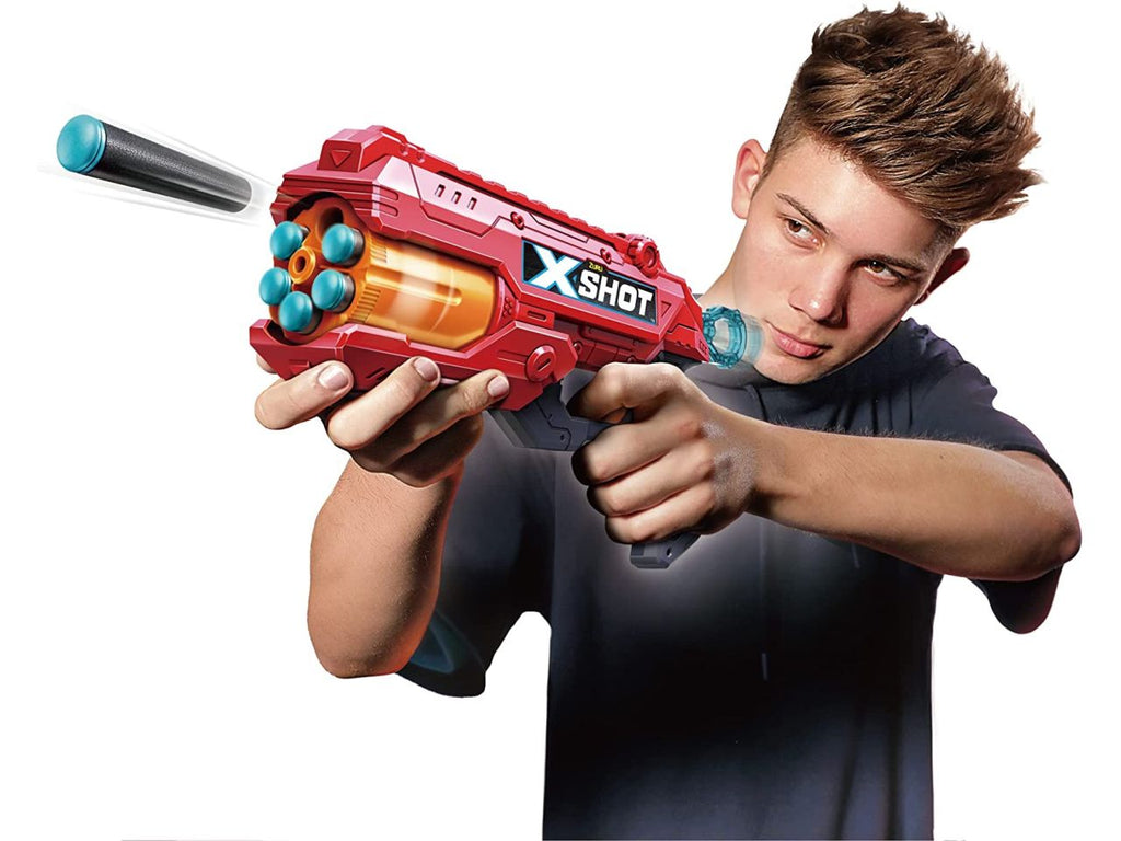 Xshot - excel reflex 6 pistola in schiuma, viene fornito con 12 frecce. tira fino a 27 metri. barilotto auto rotante 6 frecce. viene fornito con 12 freccette in schiuma per un massimo di divertimento
