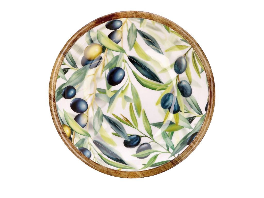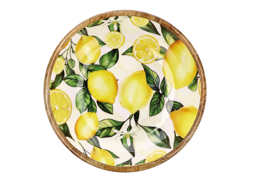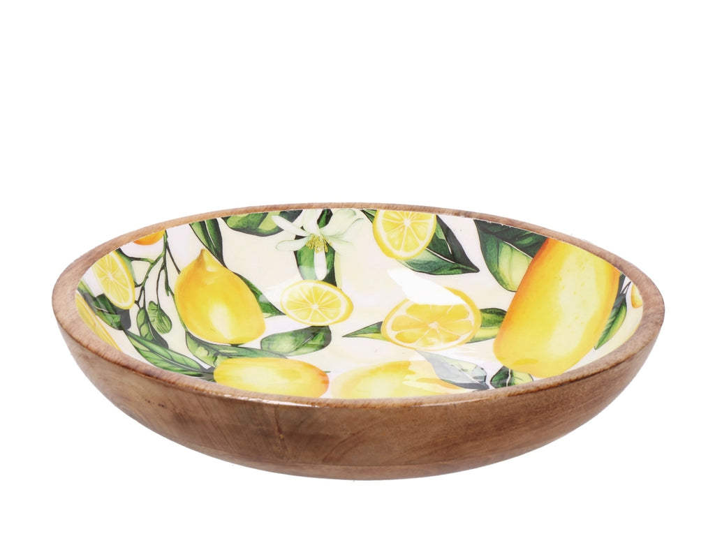 Yari ciotola d.30xh.6cm in legno, 2 decori assortiti