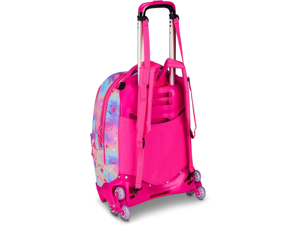 Lo zaino trolley Jack-3WD di SJ GANG STYLE JAM GANG è la scelta perfetta per le bambine della scuola elementare che desiderano comodità, capienza e un design colorato. Grazie al sistema a 3 ruote, affrontare gradini e superfici irregolari sarà semplicissimo! Il trolley è completamente scomponibile, trasformandosi in un pratico zaino quando necessario. Schienale imbottito e rivestito in tessuto, spallacci imbottiti e rivestiti in tessuto, con aggancio per Cross-Over system. Tasca interna porta borraccia. Dimensioni: 40x51x30 cm. Capacità: 33 lt.